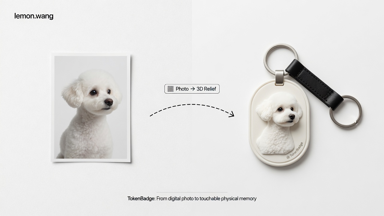 - TokenBadge: Personal photos โ touchable 3D relief keychains. Demand validated in hours via a single WeChat post.